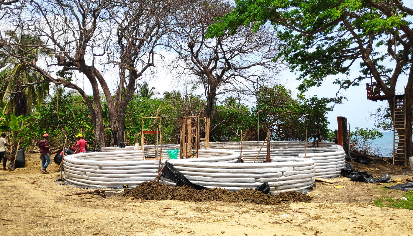 En COCO SALVAJE, priorizamos la innovación y la sostenibilidad. Al diseñar nuestro laboratorio, adoptamos la técnica de Superadobe, desarrollada por el arquitecto iraní Nader Khalili en la década de 1980. Este método utiliza sacos largos llenos de tierra, apilados en capas para formar paredes, y estabilizados con alambre de púas, creando estructuras fuertes, duraderas y en forma de domo. El Superadobe es de bajo costo, rápido de construir, resistente a los terremotos y amigable con el medio ambiente. Además, ¡se ve genial!